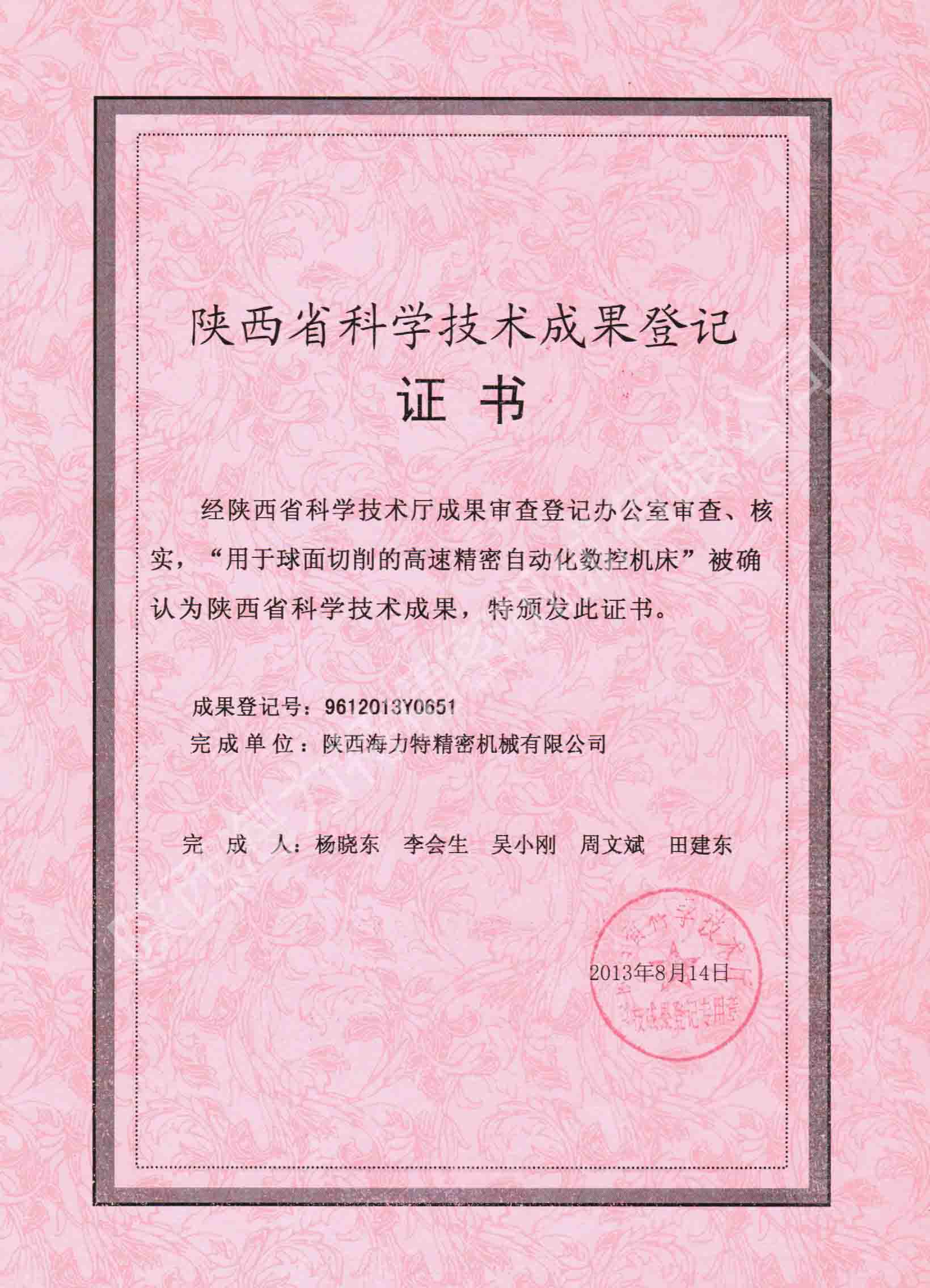 近日我公司自主研發的HNQ-50P數控球面在獲得國家發明專利授權又獲得陜西省科學技術廳省級成果登記一項。…… |